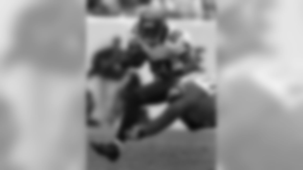 Tampa Bay Buccaneers cornerback Ronde Barber (20) eludes Carolina Panthers guard Amini Silatolu after intercepting a third-quarter pass from Panthers quarterback Cam Newton during an NFL football game on Sunday, Sept. 9, 2012, in Tampa, Fla. (AP Photo/Chris O'Meara)