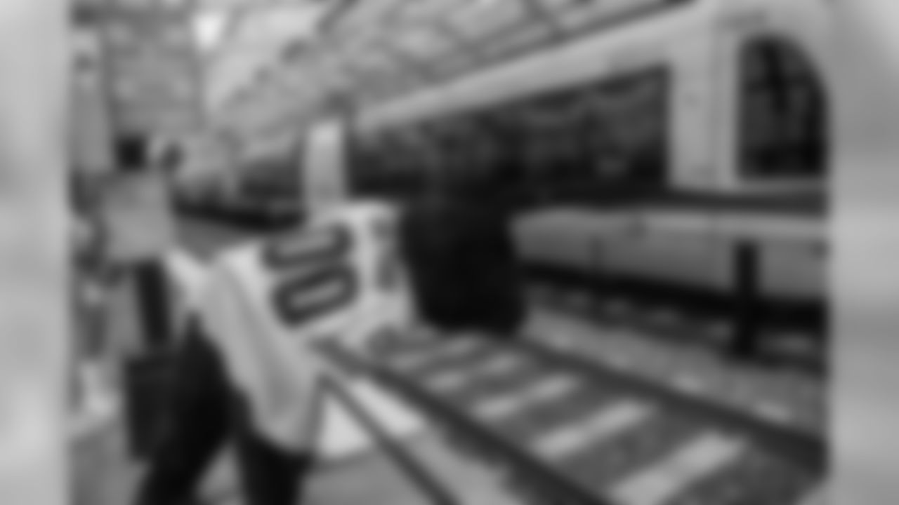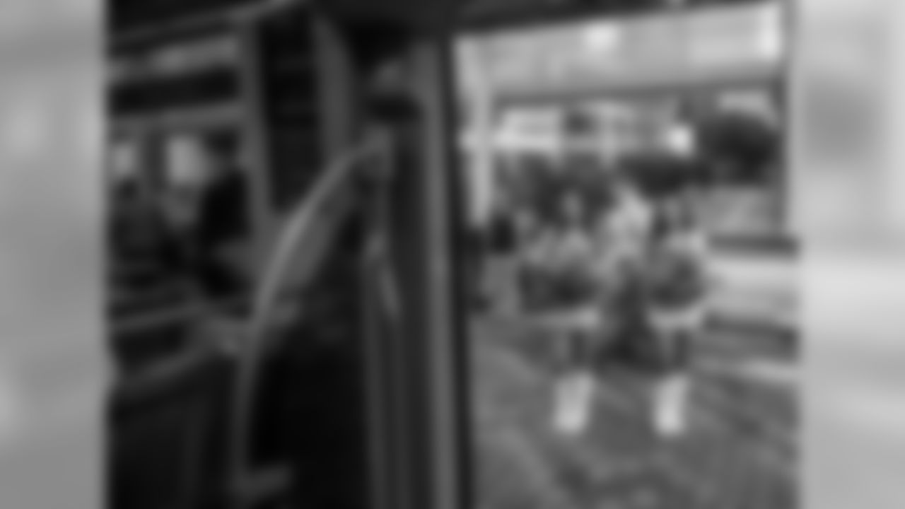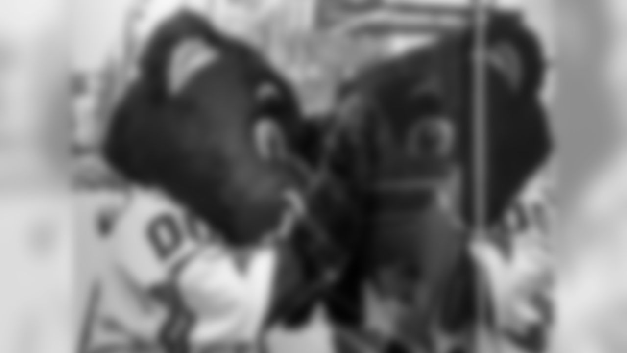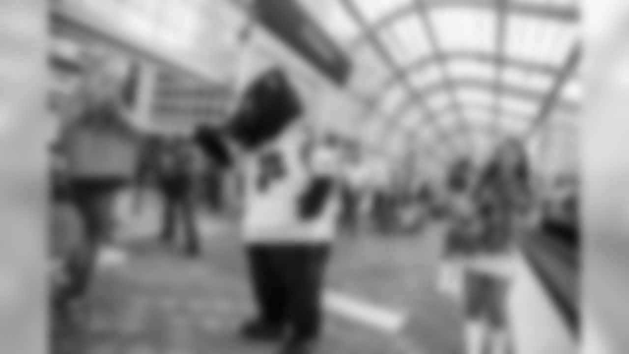 TopCats, Sir Purr help introduce commuters to the city's Panthers-themed train.