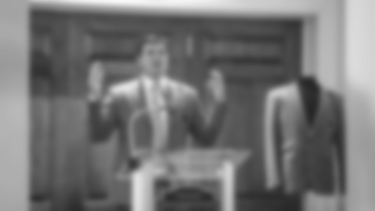Smith's ready admission that he didn't expect to be back in Carolina blue became a heartfelt thank you to general manager Marty Hurney and owner David Tepper. His actions on Sunday by displaying his jersey from under his blue blazer reinforced how emotional he felt about coming home again.