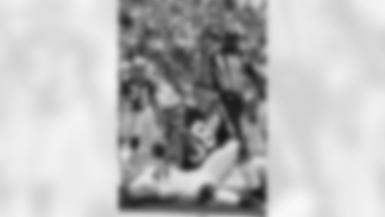 Carolina Panthers tight end Greg Olsen (88) celebrates after a 13-yard touchdown catch against Buffalo Bills defensive back Jim Leonhard in the second quarter of an NFL football game Sunday, Sept. 15, 2013, in Orchard Park, N.Y. (AP Photo/Bill Wippert)